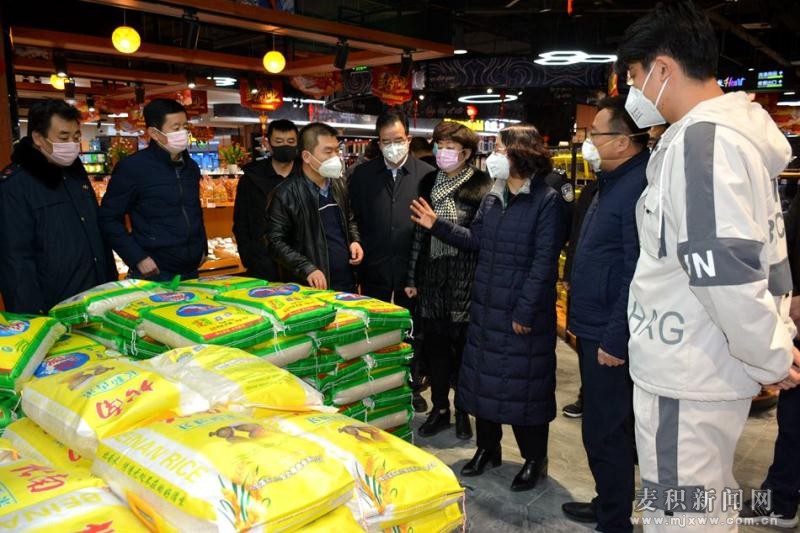 麦积区融媒体中心讯(记者 张晟斌)1月30日,市委常委、统战部部长、副市长、市疫情联防联控工作领导小组市场监管专责组组长王燕,市政府党组成员、市疫情联防联控工作领导小组市场监管专责组组长汪小娟带领市市场监管局、市公安局、市商务局、市林业草原局、市农业农村局、市畜牧兽医局相关负责人,深入麦积区检查疫情防控工作落实和商品供应情况,市政府副秘书长米万平、副区长郭耀成一同检查。