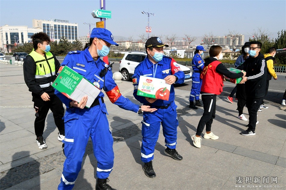 麦积区融媒体中心讯(特约记者 窦耀辉)疫情无情人有情,当前正处在新冠肺炎疫情防控的关键时期,2月22日,共青团麦积区委携手天水创志成套设备有限公司先后来到疫情防控一线的甘泉镇疫情防控检疫点、马跑泉镇大沟村疫情防控检疫点、北道埠街道办事处和大桥社区,向奋战在“疫”线的疫情防控人员、青年志愿者和社区工作者捐赠了100件陇上花牛汁,以实际行动诠释了爱心企业的社会责任和担当,为决战疫情防控贡献青春力量。
