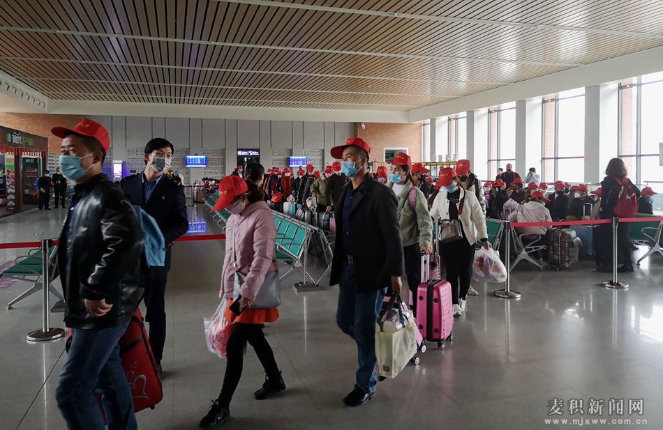 本次集中外出务工活动是麦积区首批定制专列车厢“点对点”输送外出务工人员到企业返岗工作。上车前,麦积区人社局和天水火车站的工作人员对务工人员逐一进行了体温监测和人员身份核实登记,宣传了疫情防控期间注意事项,并衔接当地政府对务工人员到达目的地后进行“接力护送”,妥善安排他们的食宿,逐一送进企业。
