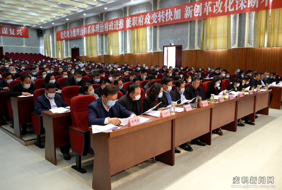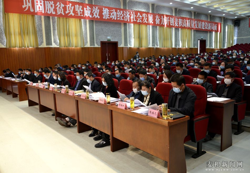 麦积区融媒体中心讯(记者 李云强)4月8日,中央脱贫攻坚巡视“回头看”和2019年度国家脱贫攻坚成效考核反馈意见整改暨全区决战决胜脱贫攻坚推进大会召开。市政协副主席、区委书记张智明出席会议并讲话,区委副书记、区长成少平主持会议并讲话。区四大组织领导高志强、霍定明、阎小鹏、樊华、周岳红、杜根祥、赵双喜、唐海明、成红梅、王启峰、杨树棠、杨彦芳、胡桂琳、闫金川、张福元及区检察院检察长张国仓等参加会议。