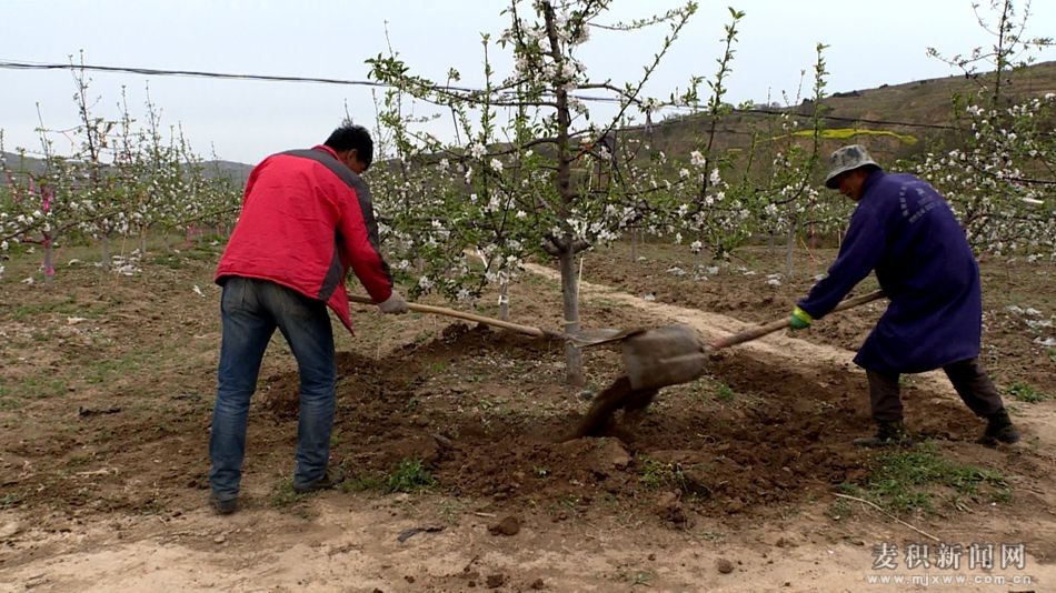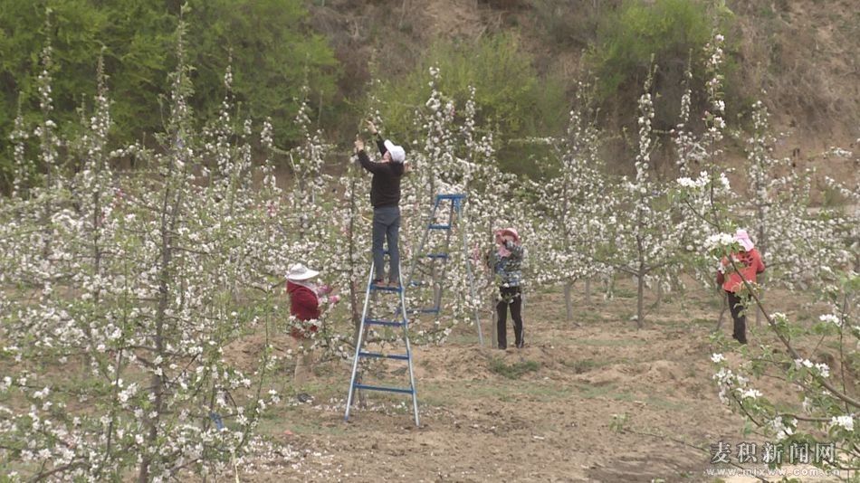 近日,记者走进天水青青果农业开发有限公司时看到,养殖羊圈舍整齐排列,工作人员正在修剪羊毛。田野上,村民们在苹果地里忙着疏花、堆放肥料。
