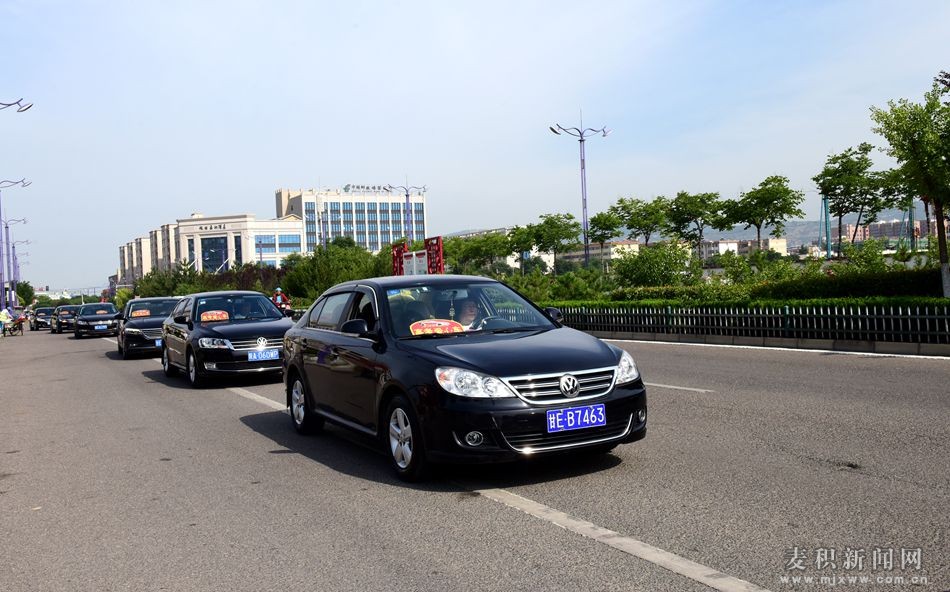 7月6日上午9时,活动在麦积区马跑泉市政广场举行,送考车辆一字排开,麦积交警为车辆进行授牌,授牌车辆7月7日将在全区范围内接送考生,确保考生顺利参加考试。