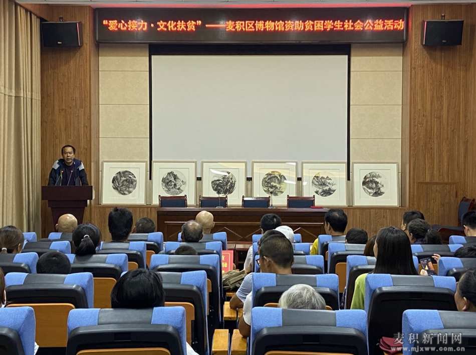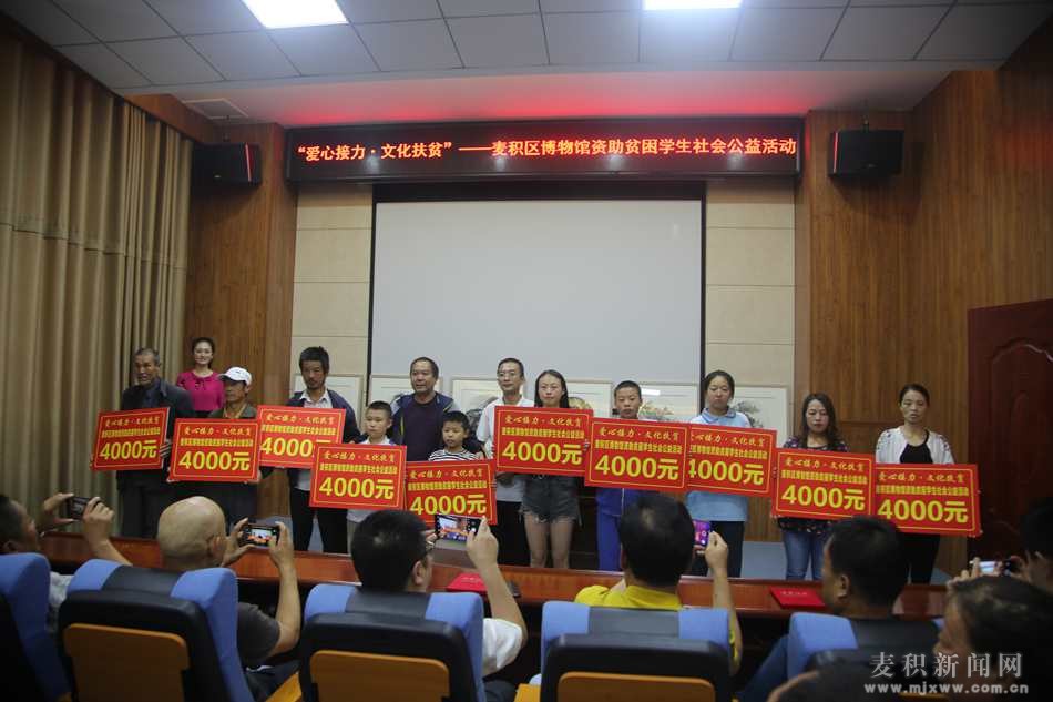 麦积区融媒体中心讯(记者 王雯)7月12日,麦积区博物馆举办“爱心接力·文化扶贫”资助贫困学生社会公益活动,丰富的活动不仅让书画艺术因公益慈善而变得温暖,同时也助推了麦积区文化扶贫工作。