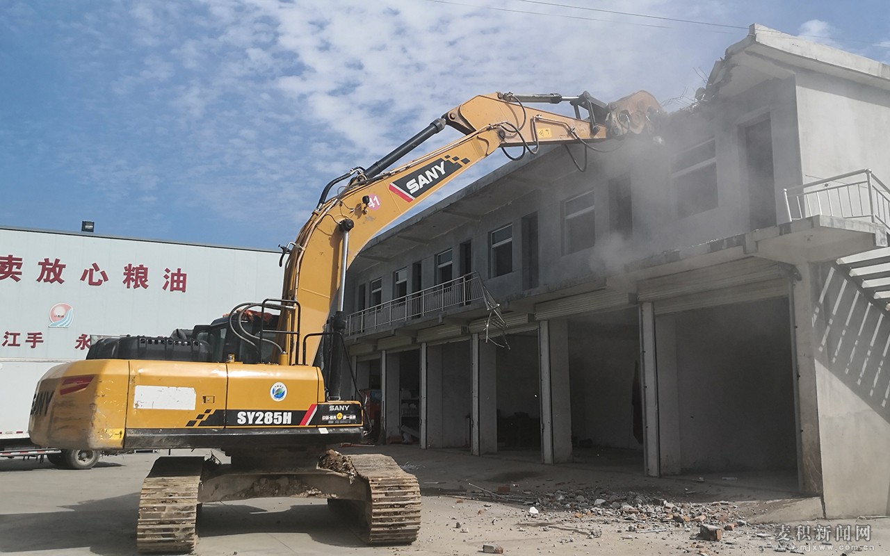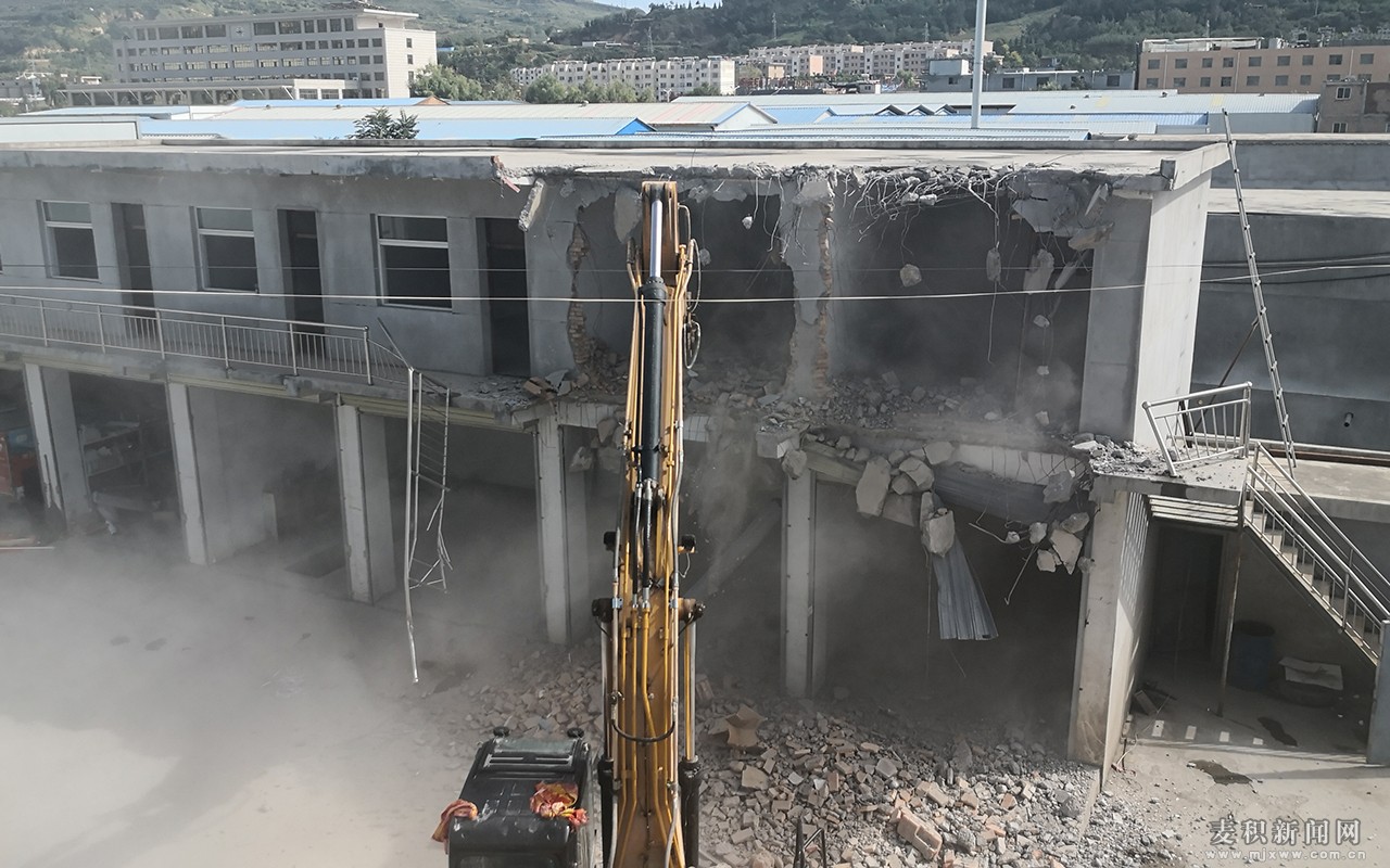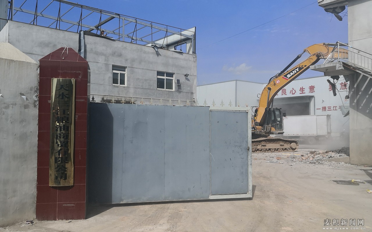 麦积区融媒体中心讯(记者 张晟斌)为维护城乡规划建设的权威性和严肃性,按照《天水市麦积区城市规划区违法建筑专项整治行动实施方案》,进一步加强城乡规划建设管理工作,严厉打击违法乱建行为,9月2日,麦积区组织自然资源分局、城管、司法局、消防、公安、卫健局等单位和花牛镇政府工作人员组成拆违工作组,由区委常委、常务副区长樊华担任总指挥,对花牛镇高家湾三江粮油“两违”建筑进行了强制拆除。