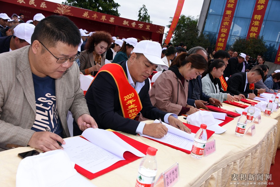 开幕式上,市政协副主席、麦积区委书记张智明作了致辞;参加仪式的领导、嘉宾观看了麦积区脱贫攻坚、花牛苹果宣传片;农民及客商代表、种植能手分别作了发言;表彰了种养植能手及2020年获奖农产品单位代表;20对企业代表现场签订了订货签约。