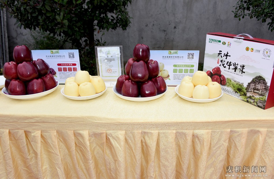 开幕式结束后,各位领导和嘉宾一同参观了麦积区名优农特产品集中展览展示,品尝质优味美的花牛苹果。
