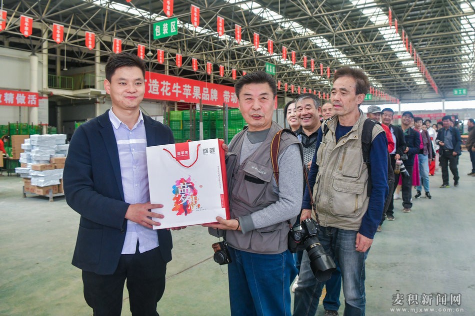 麦积区融媒体中心讯(特约记者 陈治平)金秋时节,花牛飘香。为了描绘花牛苹果的丰收景象,展示花牛苹果的色、质、形,品尝花牛苹果的香甜可口、香味四溢的优良品质,加大花牛苹果宣传力度,助力花牛苹果销售,促进花牛苹果产业发展,同时,也给摄影人提供一个创作的平台。在新中国成立71周年前夕,应天水花牛苹果(集团)有限责任公司邀请,天水市麦积区摄影家协会,《华夏文明导报·天水周刊》、一周天水网举办了“聚焦花牛 助力产业 促进销售 献礼国庆”为主题的“天水摄影家走进花牛苹果集团潘苹果基地”采风活动。