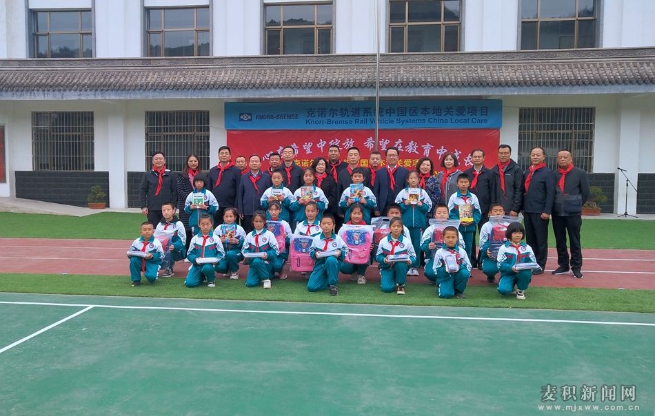 仪式上,克诺尔集团向麦积中心学校捐赠了学习用品和图书,麦积中心学校师生代表向克诺尔集团敬赠锦旗;随后相关领导为麦积中心学校塑胶操场竣工剪彩。