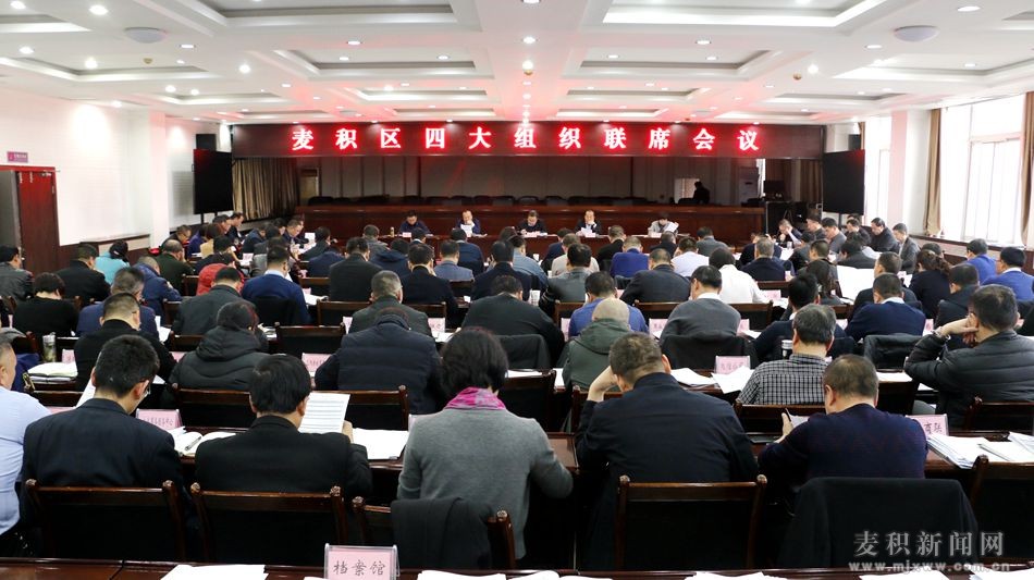 麦积区融媒体中心讯(记者 丁承志 刘秋钰)11月25日,麦积区组织召开四大组织联席会议,认真学习贯彻党的十九届五中全会精神,贯彻落实市领导调研指示和全市重点项目建设观摩检查及汇报点评会议精神,深入分析查找当前工作面临的形势和存在的问题,对下一阶段项目建设、经济运行等重点工作进行再安排、再部署,动员全区上下进一步统一思想认识,提高政治站位,靠实工作责任,狠抓措施落实,“大干三十天、奋力保目标”,扎实做好“六稳”“六保”工作,统筹推进全区经济社会高质量发展,为全区“十三五”规划圆满收官、全面建成小康社会、实现“十四五”良好开局奠定坚实基础。