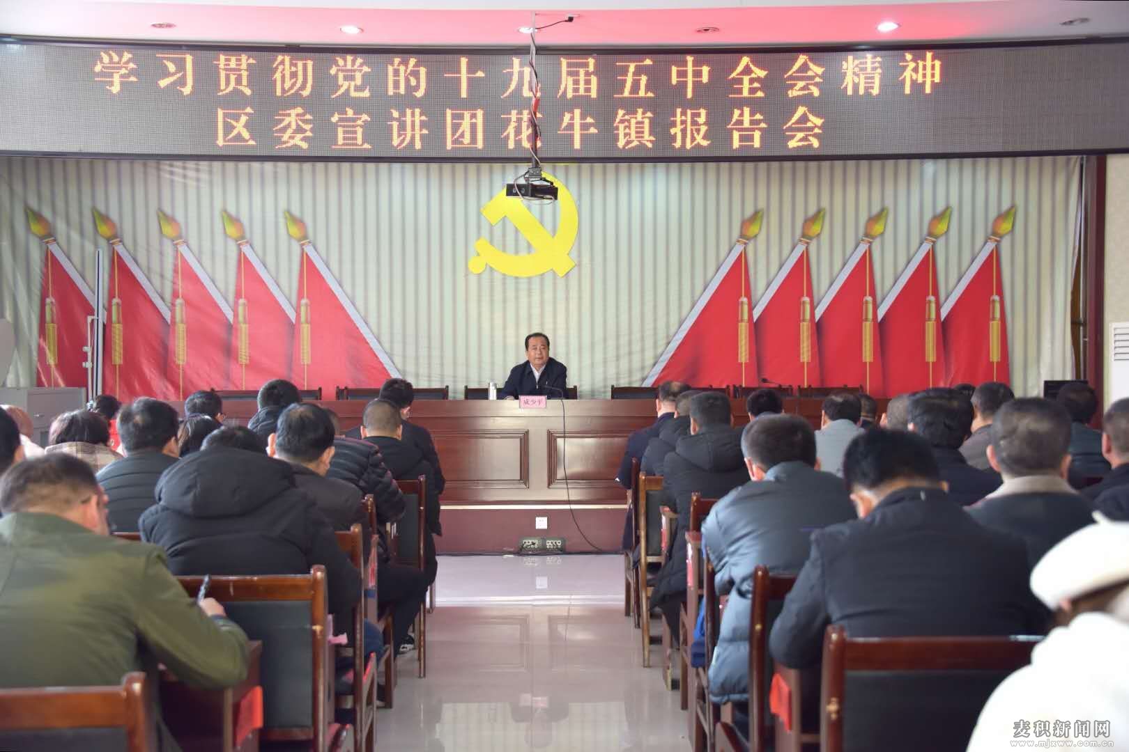 成少平指出,党的十九届五中全会是我们党在全面建成小康社会胜利在望、全面建设社会主义现代化国家新征程即将开启的重要历史时刻召开的一次十分重要的会议,是在我国即将进入新发展阶段、实现中华民族伟大复兴正处于关键时候召开的一次具有全局性、历史性意义的会议。全会审议通过的《中共中央关于制定国民经济和社会发展第十四个五年规划和二〇三五年远景目标的建议》,全面贯彻习近平新时代中国特色社会主义思想,深入贯彻党的十九大精神,清晰展望了到2035年基本实现社会主义现代化的远景目标,明确提出了“十四五”时期我国发展的指导方针、主要目标、重点任务、重大举措,是开启全面建设社会主义现代化国家新征程、向第二个百年奋斗目标进军的纲领性文件,是今后5年乃至更长时期我国经济社会发展的行动指南。花牛镇镇村两级、驻村帮扶队及全体党员干部要切实增强“四个意识”、坚定“四个自信”、做到“两个维护”,深刻领会“六个新”主要目标的丰富内涵,把面临的机遇和挑战研判准,把制约发展的弱项和短板分析透,把未来发展的项目定准、举措定好,以更加昂扬的斗志、更加饱满的热情、更加强烈的担当、更加有力的举措、更加务实的作风积极投身本职工作,以实际行动为全区经济社会发展做出新的更大的贡献。