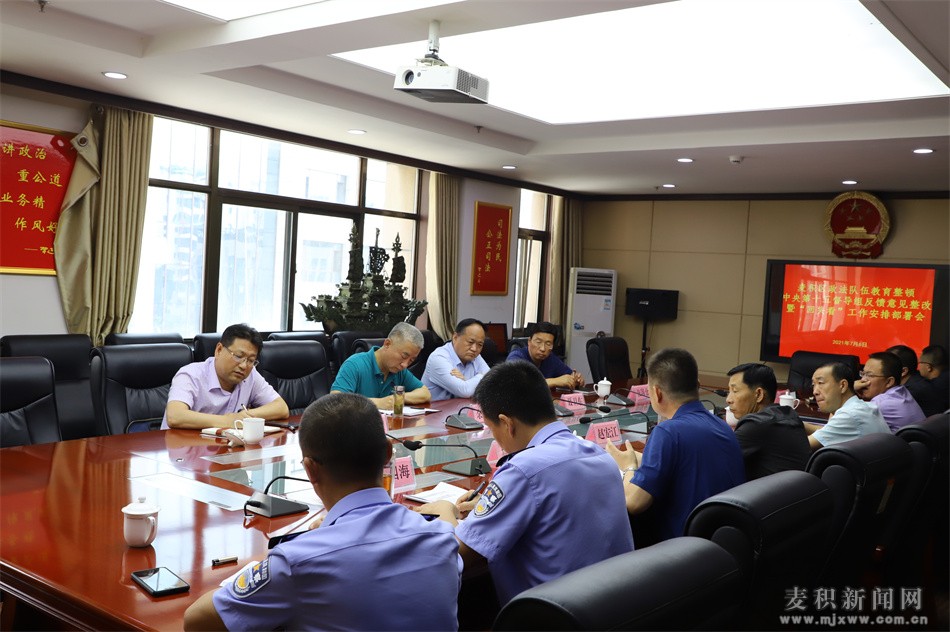 会议传达学习了中央第十五督导组督导甘肃省第一批政法队伍教育整顿情况反馈意见和《甘肃省政法队伍教育整顿领导小组关于中央第十五督导组督导甘肃省第一批政法队伍教育整顿情况反馈意见的整改方案》,《省第五驻点指导组关于指导天水市第一批政法队伍教育整顿情况的反馈意见》,传达了中央和省、市“回头看”有关要求,并就做好整改工作和教育整顿“回头看”工作进行安排部署。