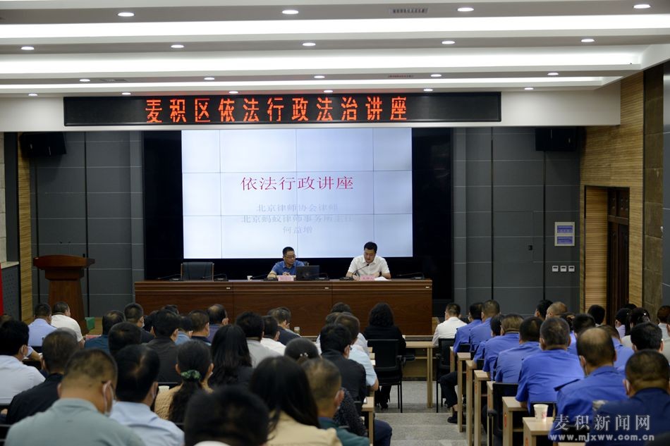 麦积区融媒体中心讯(记者 李云强)8月26日,麦积区举办依法行政法治讲座,邀请北京蚂蚁律师事务所主任何益增律师作依法行政法治专题讲座。区委副书记、代区长赵虎生主持讲座并讲话。区领导樊华、成红梅、李东海、周岳红聆听讲座。