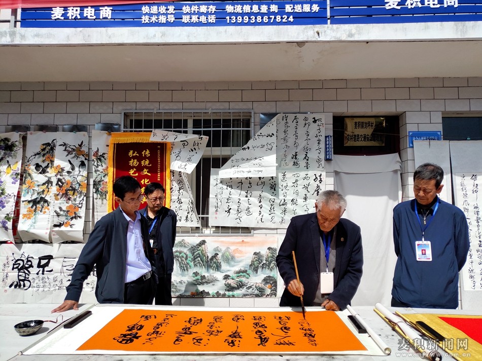 麦积区融媒体中心讯(见习记者 白梨)9月20日,云萃文化、北京当代翰墨文化艺术院甘肃分院组织书画艺术家走进麦积镇刘坪村,开展"翰墨滋千户、书画进万家"庆祝中国共产党成立100周年文化助农、书画惠民活动。