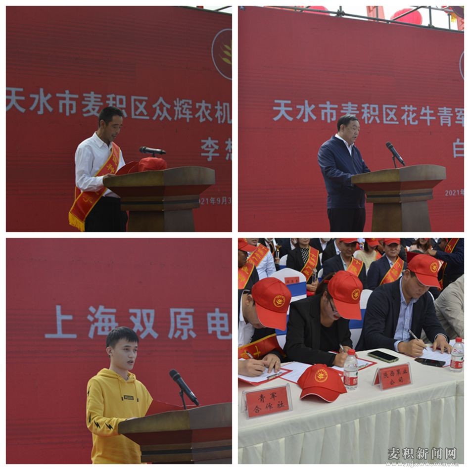 开幕式上,区委副书记、代区长赵虎生作了致辞;农民及客商代表、种植能手分别发言;表彰了种养植能手、营销能手及 2021年获奖农产品单位代表;浙江温州市、金华市果商,以及北京新发地名辉果业 、广东省深圳市宝安区陇发便利店等10家企业与麦积区相关企业代表现场签订了订货签约。
