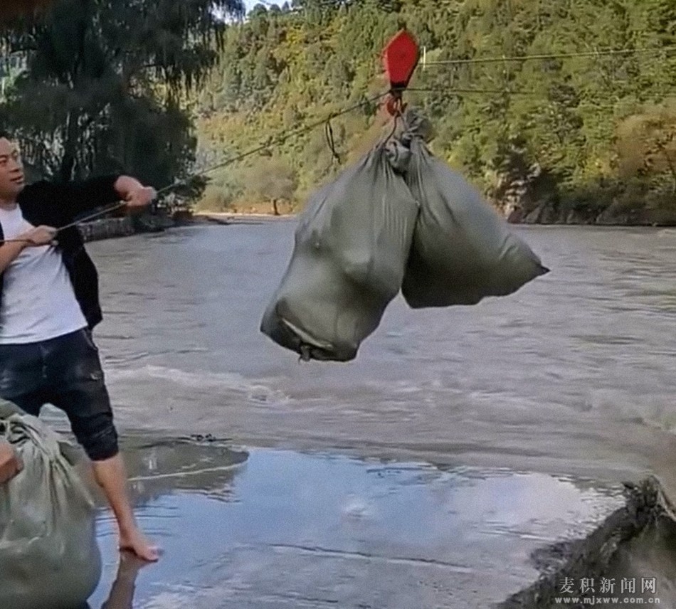 (夏坪村用索道为被困村民运送物资)