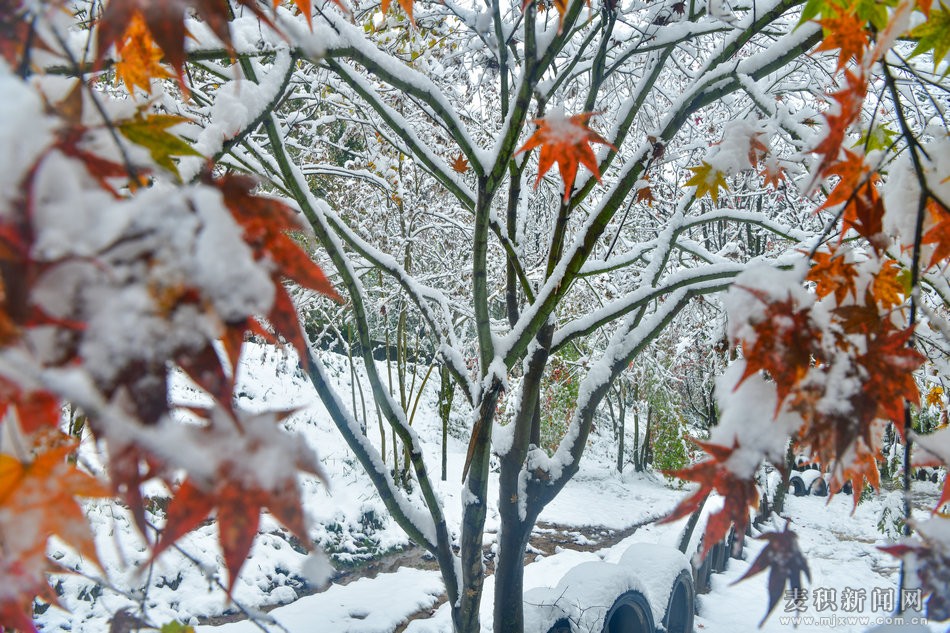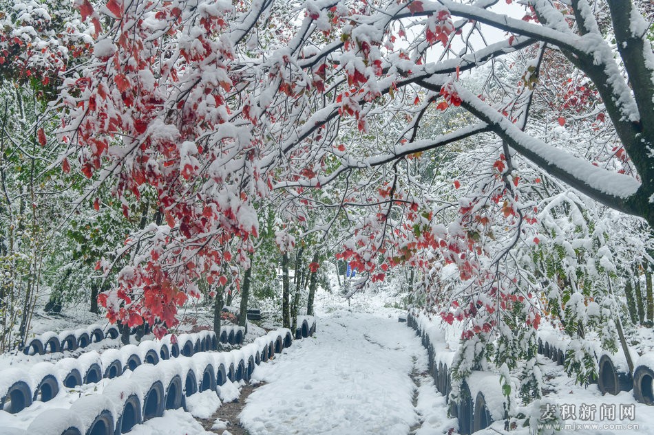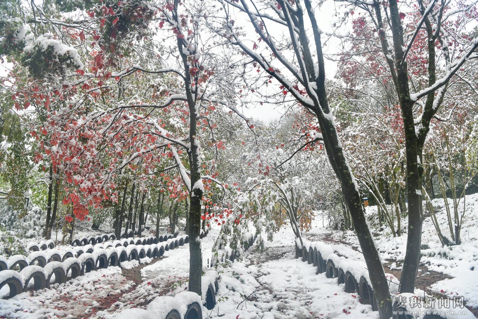雪后麦积山植物园美如画