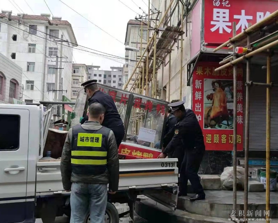 近日,记者来到麦积区城管局桥南执法中队所辖的街道看到,由于最近天气渐冷,执法队员们换上了厚实的工作服,快速进入迎接寒冷天气的工作状态,积极对辖区凤凰路、伯阳路、新阳路、石佛路、甘泉路等路段50余家创城配合整治不到位门店倚门经商、堆放杂物、墙体破损广告等进行集中清理整治。整治过程中,执法队员们明确责任分工,聚焦突出领域,在与不文明经商的店家进行创城宣传沟通后,队员们主动搬运货架、清除路障杂物、清理墙壁广告,在队员们的共同努力下,不一会街道又重新变得整洁靓丽、宽敞干净。