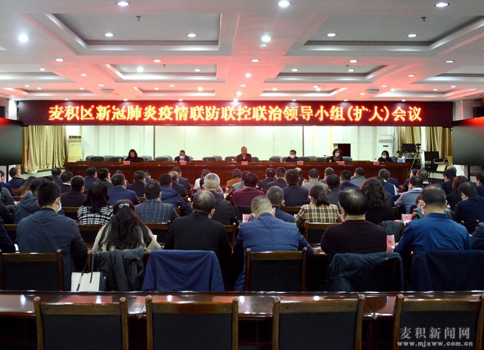 麦积区融媒体中心讯(记者 李云强)10月20日,麦积区召开新冠肺炎疫情联防联控联治领导小组(扩大)会议。麦积区委书记康泰来主持会议并讲话,区领导李春彦、温建军、杨彦芳、成红梅、张建凤参加会议。