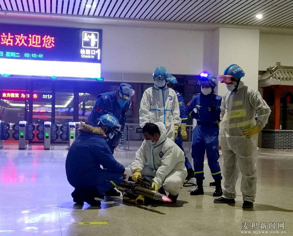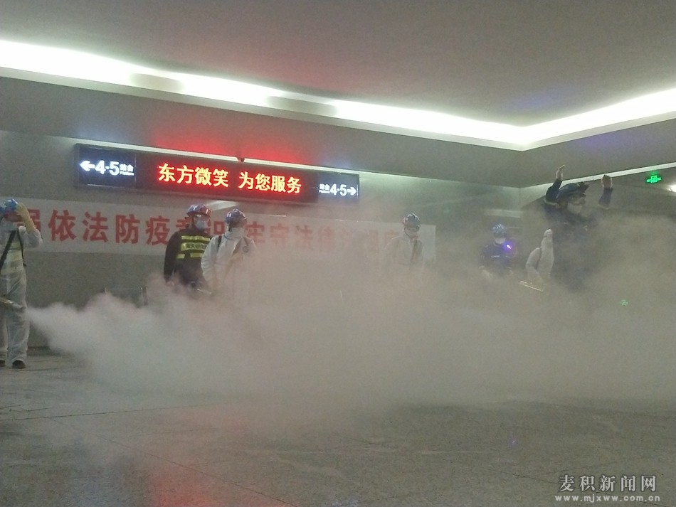 麦积区融媒体中心讯 (见习记者 牛勇 王惠萍 李雨桐 )为全力做好疫情防控工作,防止疫情传播,保障广大人民群众身体健康和生命安全,维护正常的交通秩序,在麦积区委、区政府的统一安排部暑下,天水蓝天救援队于10月25日24时在天水高铁南站进行了防疫消杀活动。