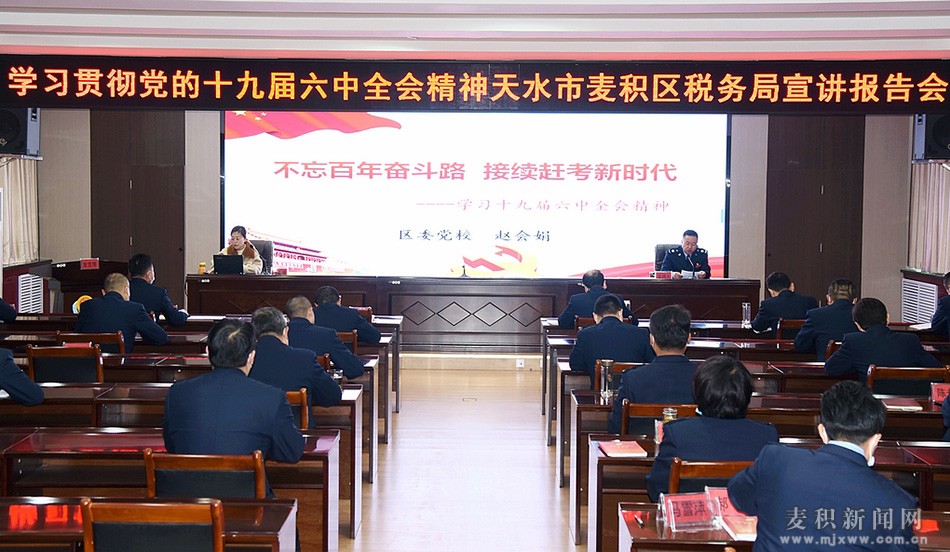 报告会以《不忘百年奋斗路,接续赶考新时代》为主题,从深刻理解党总结百年奋斗重大成就和历史经验的重大意义;深刻理解党百年奋斗的初心使命和重大成就;深刻理解中国特色社会主义新时代的历史成就、历史变革和历史经验;深刻理解党百年奋斗的五大历史意义;深刻理解党百年奋斗的十大历史经验;对新时代的中国共产党提出要求等六个方面着手进行了深入浅出的讲解。整个宣讲逻辑严密、主题鲜明、内容丰富,既有理论高度、思想深度,又有很强的指导性、针对性。大家纷纷表示,要更加紧密地团结在以习近平同志为核心的党中央周围,自觉用习近平新时代中国特色社会主义思想来武装头脑,学用结合,在深学细悟、研讨交流中提升思想认识,在稳扎稳打、实干笃行中展现担当作为,要将贯彻十九届六中全会精神与税收业务结合起来,不忘初心、牢记使命,开拓进取、扎实工作,更加积极主动地贡献更大的税务力量。