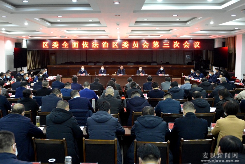 会议传达学习中央全面依法治国工作会议、省委全面依法治省工作会议、省委全面依法治省委员会第五次会议和市委全面依法治市委员会第三次会议精神;审议《麦积区关于营造法治化营商环境的实施方案》《麦积区关于健全完善镇(街道)区直部门(单位)法治建设工作机制的实施方案》《麦积区关于加强法治乡村(社区)建设的实施方案》《麦积区关于加快公共法律服务体系建设的实施方案》,研究部署当前和今后一个时期全区依法治区工作。