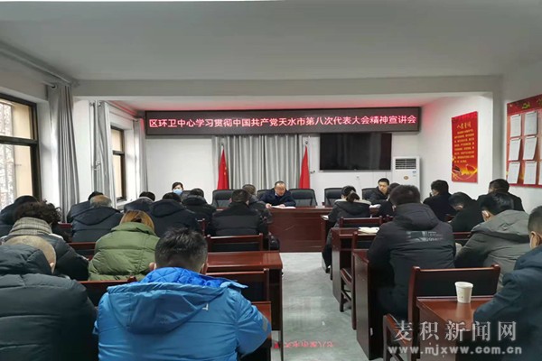 麦积区融媒体中心讯 1月17日上午,麦积区环卫中心开展学习贯彻市第八次党代会精神宣讲活动。区环卫中心党组书记对市第八次党代会精神进行了全面解读和系统讲解,中心领导班子成员,各股室负责人及机关全体干部职工参加宣讲活动。