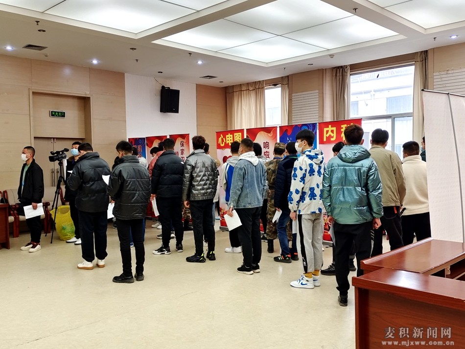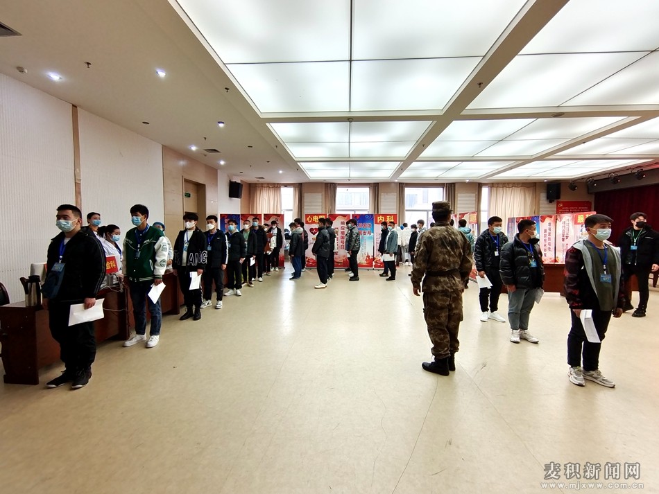 麦积区融媒体中心讯(记者 刘秋钰 王玮瑕)保家卫国终不悔,绿色军营献青春。近日,在天水市中西医结合医院专设的麦积区2022年上半年征兵体检站内,应征青年在各检查科室门口有序排队等候体检。他们抱着投身绿色军营,为国防建设贡献青春力量的信心和决心,积极认真地接受祖国挑选。