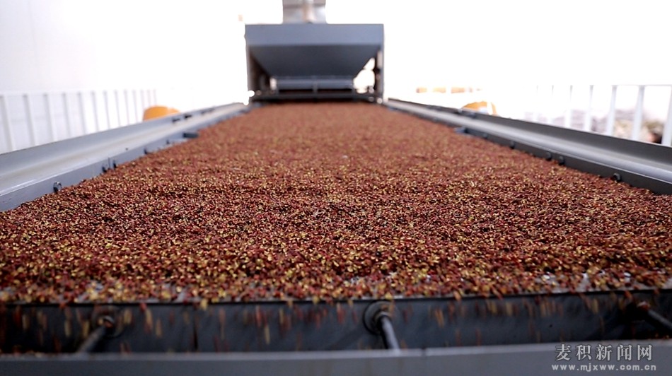 麦积区融媒体中心讯(记者 白梨 胡旭东 李丹颖)走进麦积区元龙镇的甘肃龙椒食品集团有限公司,空气中弥漫着浓浓的花椒香味,生产车间机器轰鸣,工人们正在井然有序地完成花椒的筛选、分装工作。三天以后,这些加工好的花椒将送往有名的“老干妈”“绝味鸭脖”等这样的大企业,出现在全国人民的餐桌上。作为元龙镇的一张特色名片,小小的花椒正逐步成长为托举民生的大产业。红红的花椒,鼓起的是村民的钱袋子,带给村民的是火红的好日子。