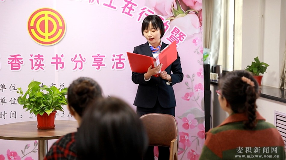 麦积区融媒体中心讯(记者 白梨 胡旭东 李丹颖)阳春三月,春天迈着轻盈的脚步款款而来,“三八”国际妇女节也携着芬芳如期而至。为深入学习贯彻习近平总书记关于注重家庭、家教、家风建设的重要论述,结合麦积区广大女职工在自身岗位及家庭建设中发挥的独特作用,3月7日,天水市总工会女职工委员会在区总工会职工书屋举办了庆“三八”培育好家风女职工在行动暨“玫瑰书香”读书分享活动。