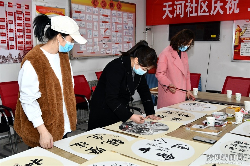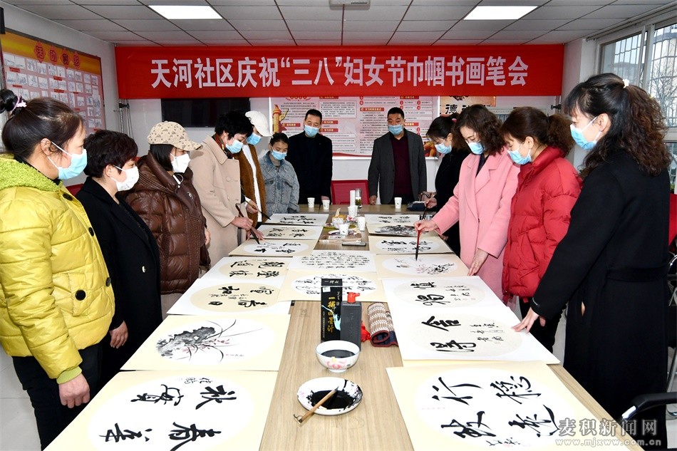 麦积区融媒体中心讯(特约记者 窦耀辉)巾帼心向党,翰墨歌盛世。3月4日,麦积区桥南街道天河社区举行庆祝“三八”妇女节巾帼书画笔会。辖区的女书画爱好者欢聚一堂,挥毫泼墨、交流心得,以特有的方式共庆 “三八”妇女节。