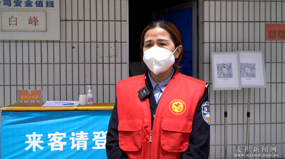 麦积志愿者刘小红:“五一期间,我们这些做志愿者的还是要依然坚持值班值守,坚持疫情防控工作不放松,确保疫情防控工作万无一失。虽然我们失去了休息的时间,但是能够保障辖区居民的健康,我很乐意,这也是我们应该做的。”