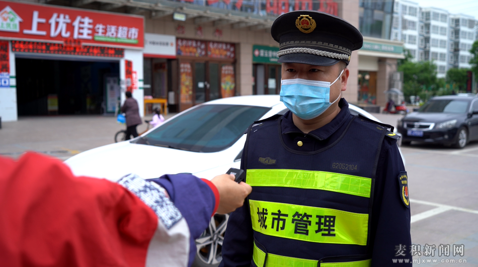 麦积城管闫俊岗:“五一假期,我们安排专人错时值班,加强巡查,做到节假日执法力量不减弱,管理标准不下降,加大对城市主次干道和临街商铺倚门经商和乱堆杂物等城市八乱现象的集中整治,改善城市面貌,提升城市形象,确保城市秩序整洁有序,市民出行畅通无阻,为广大市民全力营造一个安定和谐的节日环境!”