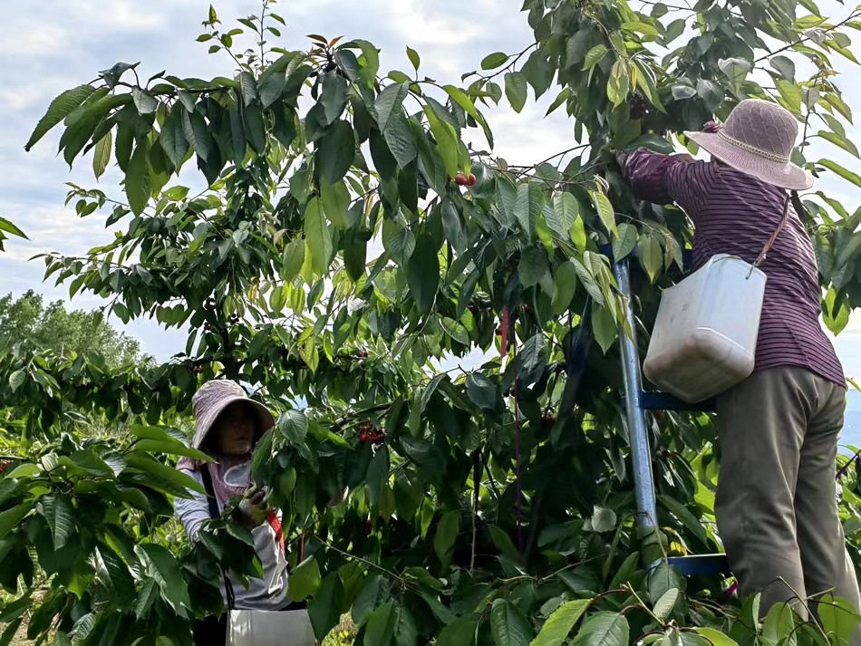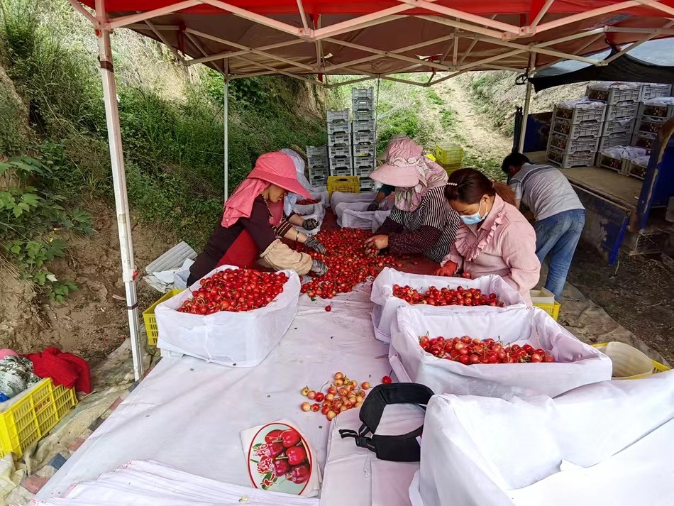 记者了解到,慕达果业樱桃种植基地因采用交叉栽种多个品种的方法,提高了樱桃的授粉程度,所以樱桃的坐果率较高;又因基地地处翠山之上,海拔较高,温差大,结出的樱桃味道可口、鲜嫩多汁,受欢迎程度高,所以近几年的销量一直很好。慕达果业负责基地生产的刘万镇在和工人采摘、分拣的间隙,高兴地向记者分享起了今年大樱桃丰收的喜悦:“我们这个基地面积大概是40到50亩,苗数大概是2000苗,有5个品种,坐果都挺好。销售方面除了我们直销到兰州等地外,也有电商来这里往外地发的。另外,还有我们天水本地人来采摘的,大多都是回头客。”