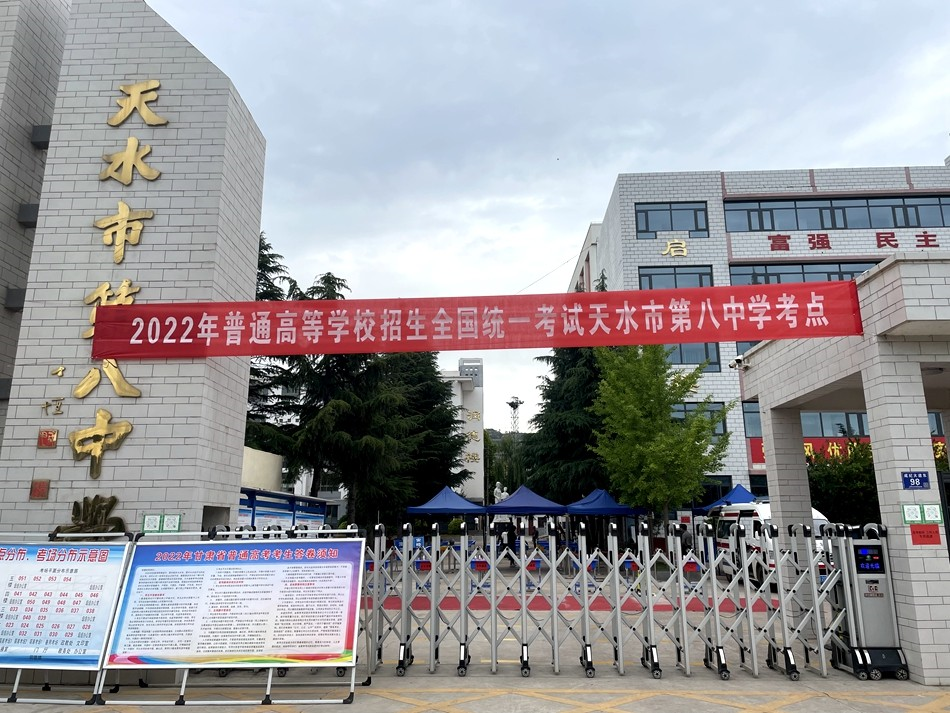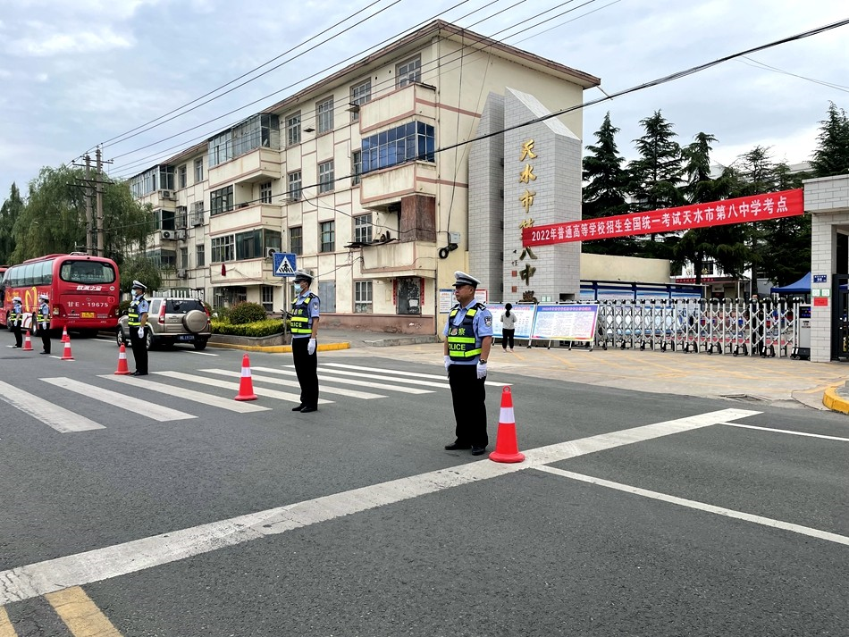 6月6日下午,记者在天水市第八中学高考考点看到,交警、城管人员正在清理考点周边违停车辆,摆放反光锥筒,增加“机动车绕行”“禁止乱鸣笛”等临时交通管制标志,确保运考车辆优先通行,为考生建立安全通道。