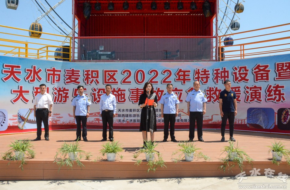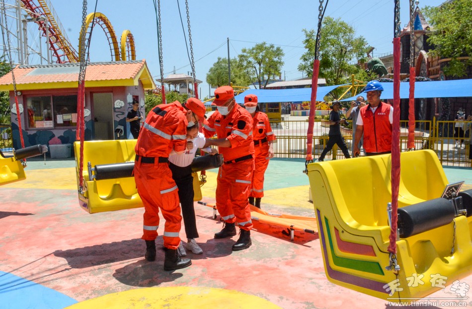 6月16日,麦积区市场监督管理局在麦积区爱马欢乐世界开展大型游乐设施突发事故应急救援演练。本次演练模拟因游乐设施出现设备故障,需启动紧急救援预案,对“被困游客”展开救援行动。