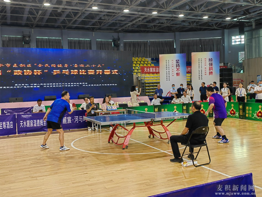 麦积区融媒体中心讯(记者 王惠萍 王玮瑕)6月16日上午,麦积区“全民同健身、喜迎二十大”第二届“政协杯”乒乓球比赛在道北群众文化体育活动中心综合馆隆重开幕。