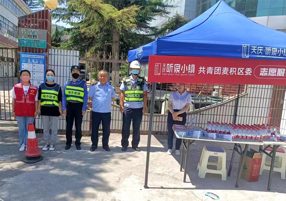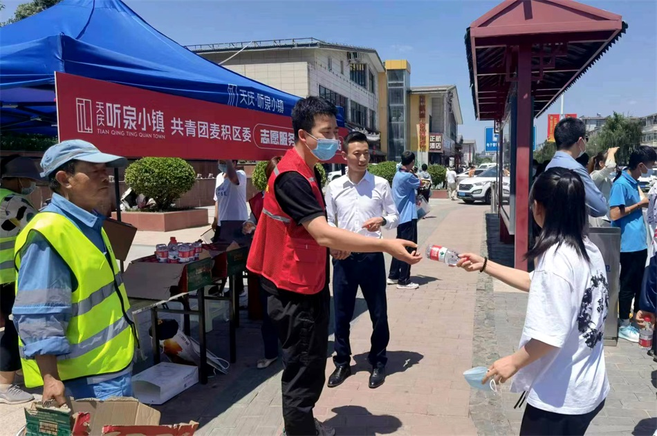 麦积区融媒体中心讯(特约记者 窦耀辉)为了给广大考生及陪考家长提供贴心便利的助考服务,中考期间,共青团麦积区委携手爱心企业天庆集团天水分公司、天水龙城救援志愿服务队,开展“助力中考、爱心护航”志愿服务活动,在天水市第二中学、天水市第八中学、桥南小学、道南小学、天润学校等考点设置志愿服务爱心助考加油站,为参加中考的莘莘学子和考生家长送去了夏日里的清凉。