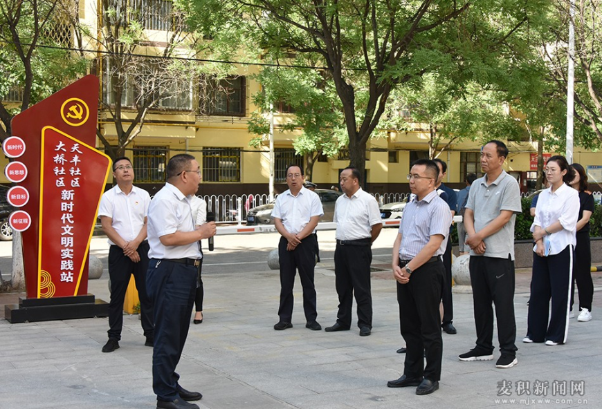王文东一行先后来到大桥社区、天丰社区新时代文明实践站,马跑泉公园新时代文明实践开放式活动基地、天水大革命纪念馆新时代文明实践爱国主义教育基地、麦积镇红崖村新时代文明实践站等地,通过实地查看、听取汇报、查阅资料等方式,详细了解了麦积区新时代文明实践中心阵地建设、队伍组织、制度设计、氛围营造、实践内容等方面的好经验、好做法。