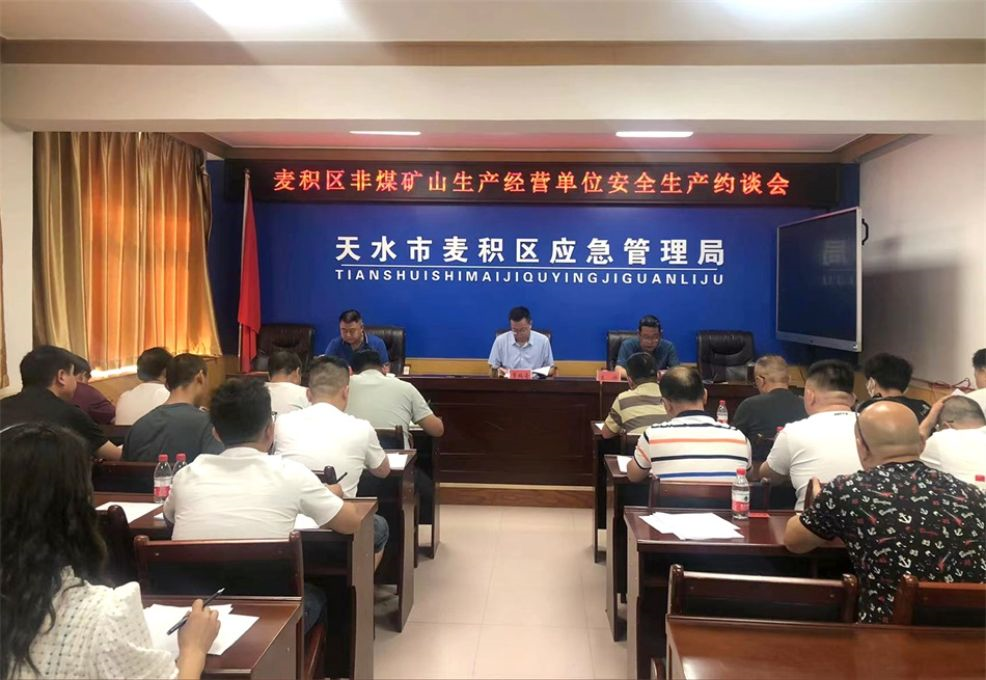 麦积区融媒体中心讯(特约记者 窦耀辉)7月8日上午,麦积区应急管理局召开非煤矿山生产经营单位安全生产约谈会,对非煤矿山生产经营单位主要负责人和分管安全工作责任人进行集体警示约谈。