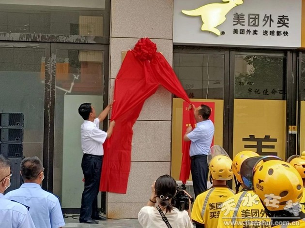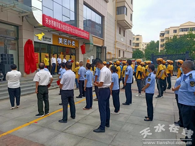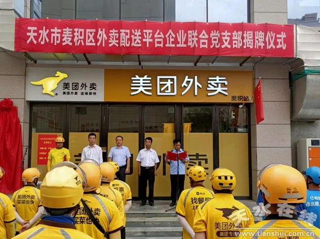 8月9日上午,天水市麦积区外卖配送平台企业联合党支部举行揭牌仪式。