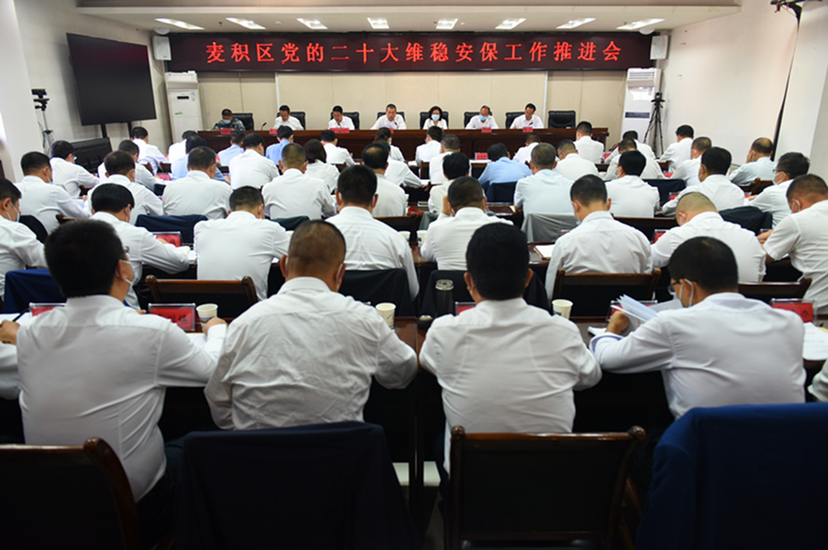 麦积区融媒体中心讯(记者 姚苗 董洁)9月6日,麦积区召开全区党的二十大维稳安保工作推进会议。区委常委、政法委书记、平安麦积建设领导小组常务副组长、区党的二十大维稳安保工作指挥部总指挥李东海,区人大常委会副主任、平安麦积建设领导小组副组长杨彦芳,区政协副主席王进孝,区法院院长、平安麦积建设领导小组副组长、区党的二十大维稳安保工作指挥部副总指挥周海,区检察院检察长、平安麦积建设领导小组副组长、区党的二十大维稳安保工作指挥部副总指挥张宇,区武装部部长、平安麦积建设领导小组副组长李根来出席会议。区政府副区长、麦积公安分局局长、平安麦积建设领导小组副组长、区党的二十大维稳安保工作指挥部副总指挥王禳虎主持会议。