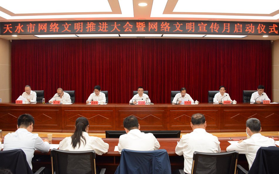 9月8日,天水市召开2022年网络文明推进大会暨网络文明宣传月启动仪式。市委常委、宣传部部长王文东出席会议并讲话,同时宣布天水市网络文明宣传月活动启动。市委宣传部副部长、市委网信办主任刘越高主持会议。