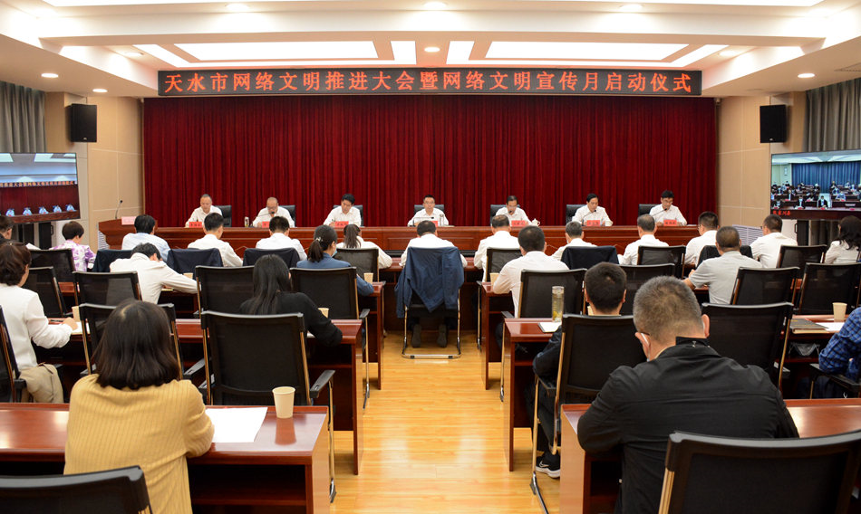 2022年天水市网络文明推进大会暨网络文明宣传月启动仪式以视频会议的形式召开,市委有关部门、市级国家机关及有关部门、各人民团体、驻市有关单位负责人在主会场参加会议,各县区相关部门单位在分会场参加会议,共计350多人。