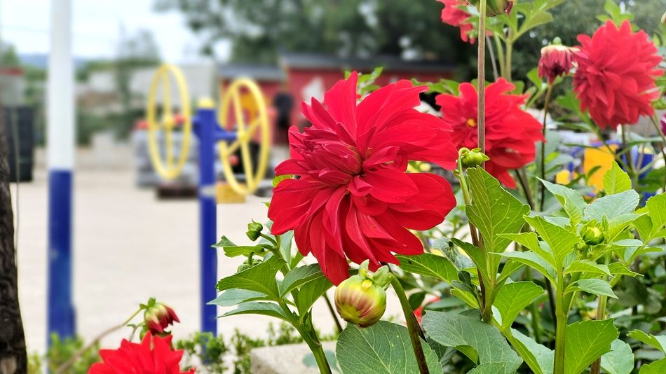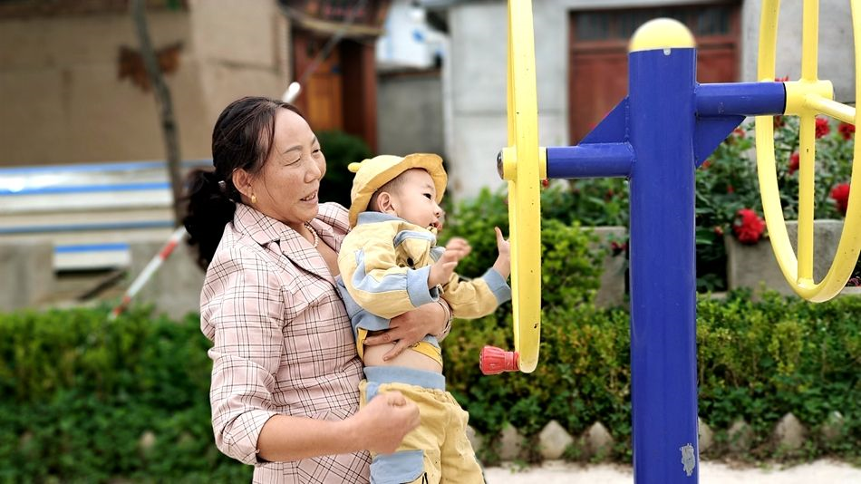 迎着温煦的阳光,来到村文化广场的另一端。纷繁艳丽的鲜花盛开在美丽整洁的文化墙下,54岁的王小燕正抱着孙子在广场上散步,小孙子抱着新建的健身器材不放手。当问起乡村哪里美时,王小燕乐呵呵地告诉记者,是“生活美”了!