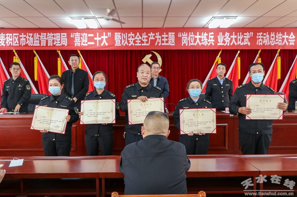为庆祝党的二十大胜利召开,麦积区市场监督管理局10月18日下午,对2022年“喜迎二十大”暨以安全生产为主题“岗位大练兵、业务大比武”活动组织开展了总结大会,市市场监管局党组成员、市纪委监委派驻市市场监管局纪检监察组组长伏虎出席会议并讲话。