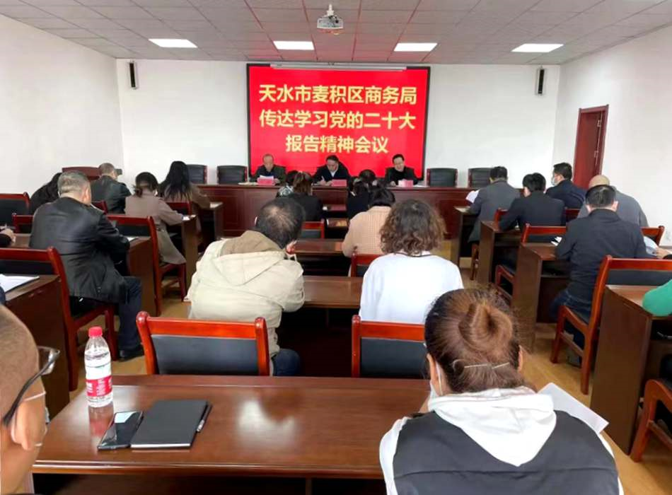 麦积区融媒体中心讯(记者 成凯莉 陶宇)连日来,麦积区商贸领域全面掀起学习宣传贯彻党的二十大精神热潮。大家紧密结合商务领域疫情防控、稳增长和安全生产等重点工作,在“学懂”“弄通”“做实”上下功夫,让商务发展成果更多更好更公平惠及广大人民群众,不断增强人民群众的幸福感、获得感。