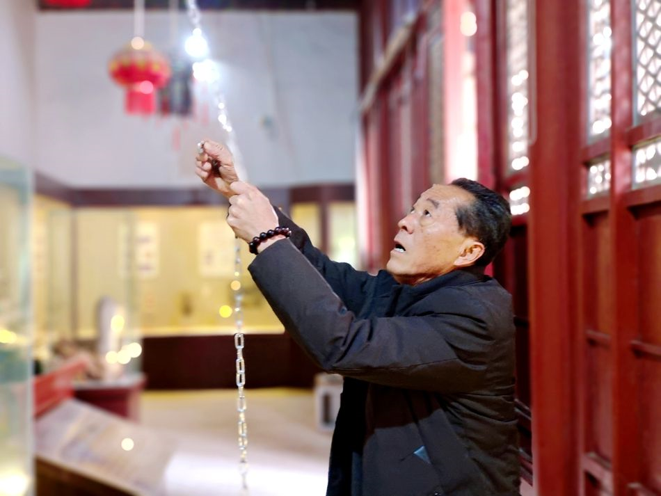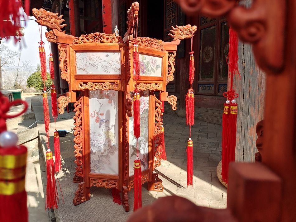 麦积区融媒体中心讯(记者 吴雪镕 王博雅)腊八节,麦积木雕非遗传承人张德义一行去卦台山送订做好的四盏灯。灯上有蚕丝制成的花鸟图,雕刻的六龙飞天。色彩古朴典雅,形象逼真。一盏灯六十多斤,得挂到三米高的横梁上,张德义拉着一条两指粗的铁链,工人踩梯子将铁链固定好后,张德义“呼啦啦”一拽,儿子张成成托着花灯往上一送,一盏花灯稳稳地过了人的头顶,像孔明灯一样“飘”上了天。张德义满意地抬头望,“这才好看了嘛”。