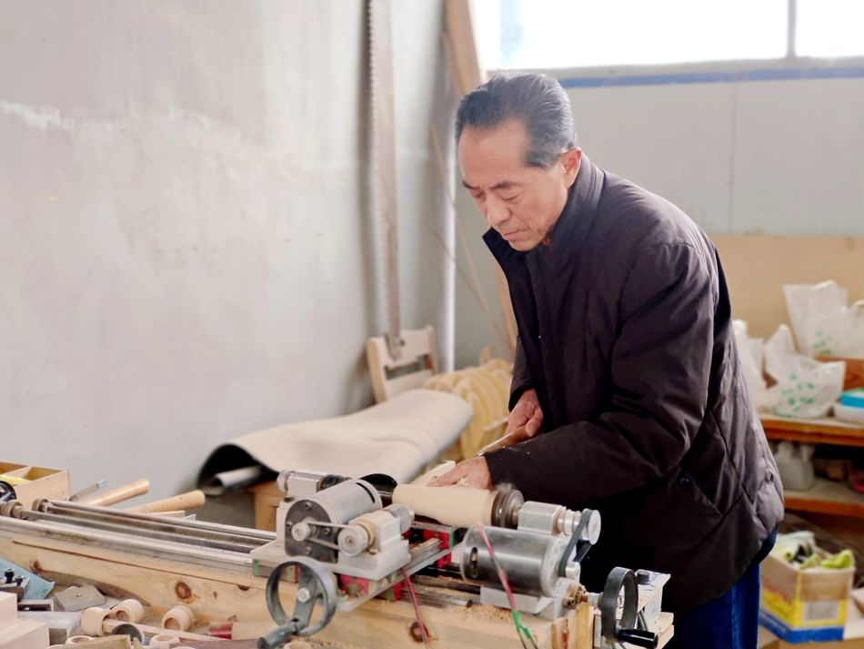 厂房里的张德义干起木活,在机器嗡嗡转动间,呼啦啦扬起一阵木屑,像木头被温柔地覆在这位民间艺人的手上完成了一次“魔法游戏”,这是木材与手艺人的亲切对话,是张德义40多年的木艺生涯建立的感情。木质家具上雕刻的精美花纹,有种东方自然而然的含蓄美,深受客户喜爱,货品也远销深圳、上海等地。