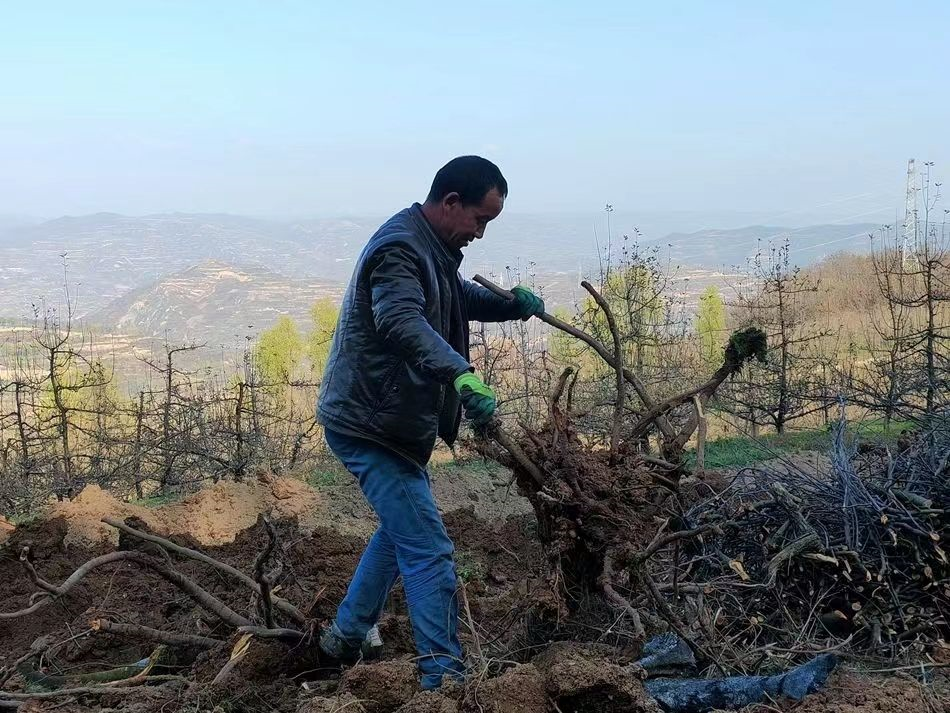 冬季天气寒冷,但在麦积区甘泉镇毛集村、马跑泉镇龙槐片区和大穆湾片区、伯阳镇曹石村等镇村的果园地里却是一片“火热”景象。只见一台台大型挖掘机在果园里缓缓穿梭,随着阵阵“咔嚓、咔嚓……”的声音,一棵棵老旧果树缓缓倒下;果农们来回折返于田间地头,扛大枝、理细条、挖树根……共同谱写老旧果园升级改造的欢乐曲。