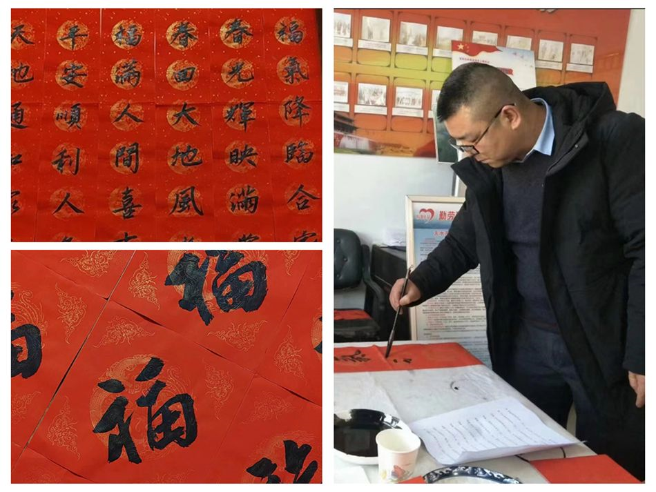 麦积区融媒体中心讯 春节即将来临之际,麦积区马跑泉镇杨湾村第一书记王晓光利用工作之余,为广大群众书写福字100余个、春联200余副。一张张饱含祝福的“福”字,一副副充满节日气息的春联,营造出了浓浓的年味,寄托着对美好生活的向往和期盼,传递着新时代文明和谐的新风尚。
